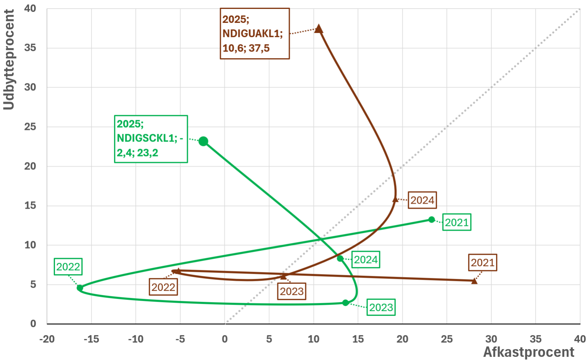 - for 1 dag sidenfor 1 dag sidenNordnets standardgrafer og oversigter viser desværre ofte kun "Price Return" (kursændringen). For at se det reelle afkast resultat skal man vise "Total Return", hvor udbytterne geninvesteres i beregningen. Denne fond (DKIDKIX) har historisk udbetalt betydelige udbytter, hvilket skaber store "buler" i kursgrafen. For eksempel blev der udbetalt 26,00 DKK pr. andel i 2022 og 11,80 DKK i 2023. Afkast tal bør ALTID vise total return som inkluderer udbytter. Dette er også tilfældet på andre finansielle sites.for 1 dag siden · Redigeretfor 1 dag siden · RedigeretAfkastprocenten efter skat afhænger af den enkelte investors skattemæssige situation. Årsrapporter fra danske investeringsforeninger definerer afkast med en antagelse om, at det udloddede udbytte på udbyttedagen UBESKATTET geninvesteres i den udloddende afdeling. For danske investorer giver det ingen mening at investere frie midler i en udloddende dansk aktieindeksafdeling. Hvis danske investorer tror, at der er en lineær sammenhæng mellem afkastprocent og udbytteprocent, kan de starte med at studere årsrapporterne fra Investeringsforeningen Nordea Invest: https://cdn.prod.nntech.io/shareville-media/groups/b18bc438-9572-45a1-addf-a5ca95abec68/logos/32c3b96e-3762-48fd-96de-a10045adcd57.png